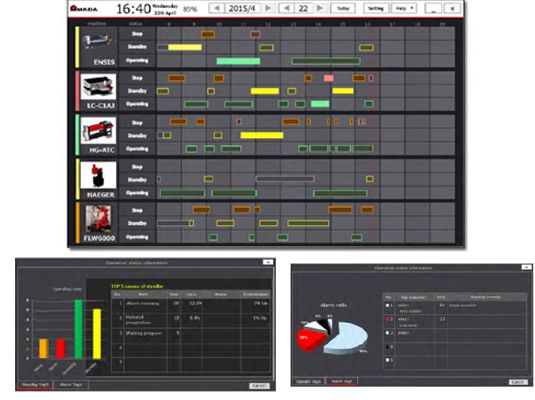 It accumulates a set of operation data from machines as digital data and shows them in the graph and table form, which visualizes hidden factors that may affect the machine operating rate.